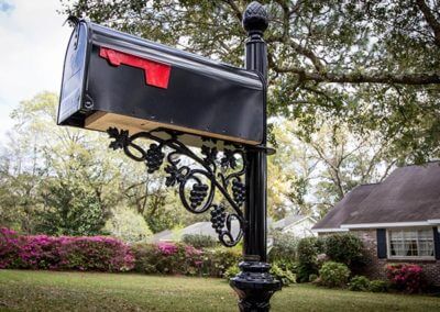 M-80 Features a 2 1/2″ steel post with Corinthian base, full vineyard bracket, and acorn top, beautiful high gloss black finish. Standard size wood mount board attached stainless steel screws for mailbox included. Welded concrete tab. Height from ground to bottom of mailbox is 38 inches, and height from ground to top of the post is 56 inches. Shipping dimensions 64″L x 22″W x 7″H, shipping weight 40lbs, Mailbox sold separately.