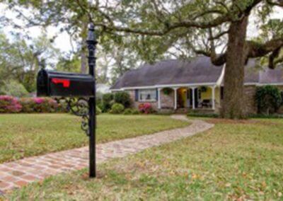Features a 2 1/2 inch steel post with ornate scroll bracket, crown and collar top. Available for Mobile and Baldwin County only.